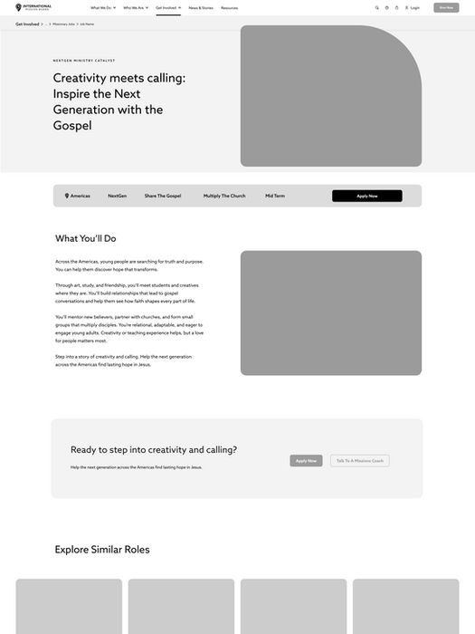 This project is currently in progress. The goal of this initiative is to increase the visibility and overall experience of becoming a missionary, with the ultimate aim of helping more people go to the field.